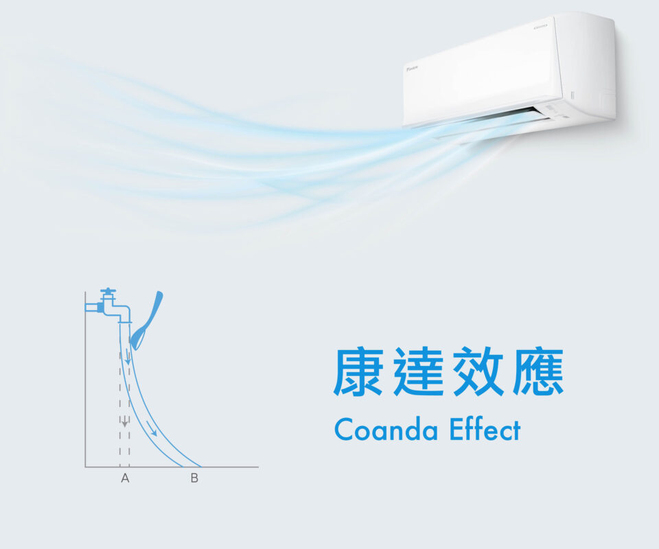 Applying the Coanda effect, the Daikin Coanda Series comes with a specially designed panel that adjusts airflow direction, creating a gentle and balanced air circulation for ultimate comfort.