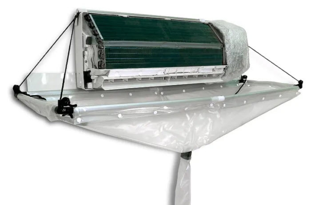 As a general rule of thumb, if a Split-Type AC cannot fit a standard wastewater catchment cradle underneath (see sample photo below), AirCare Solutions reserves the right to apply a $200 surcharge for the additional time, labor, and operating equipment required to clean ACs that are installed in such a way.