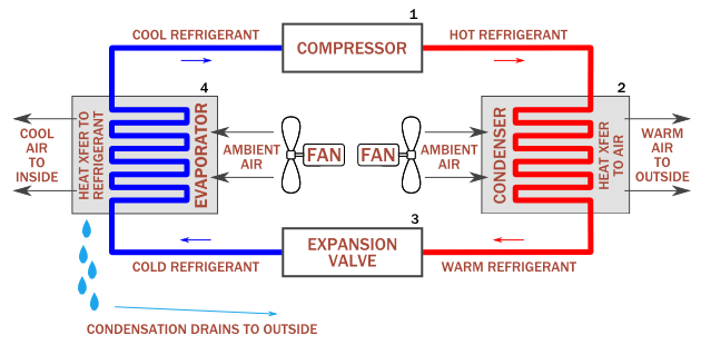 The image below provides a simplistic overview of an air conditioning system – the cleanliness of both the indoor unit and the outdoor unit are critical for the AC system to operate at maximum efficiency